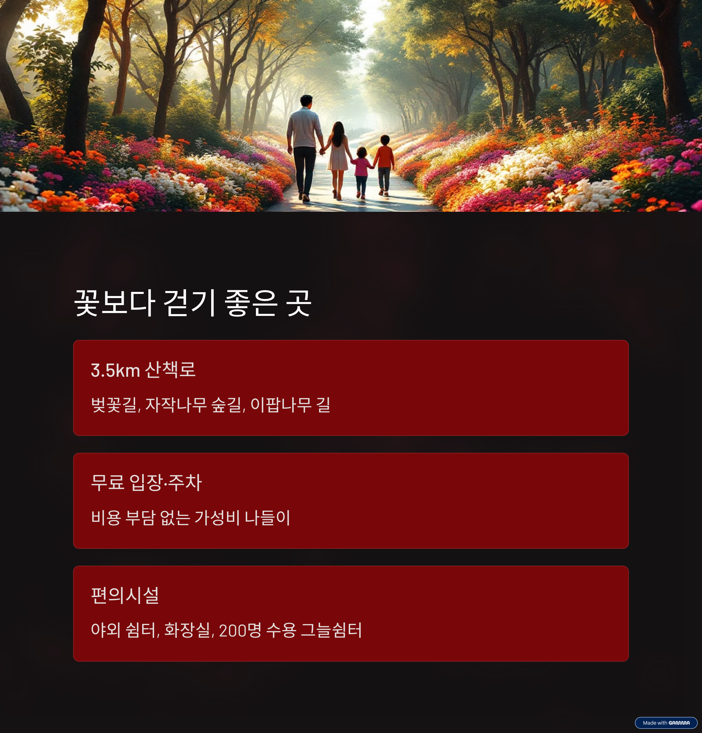 단순한 꽃구경을 넘어선 **'사계절 자연과의 교감 공간'**입니다.