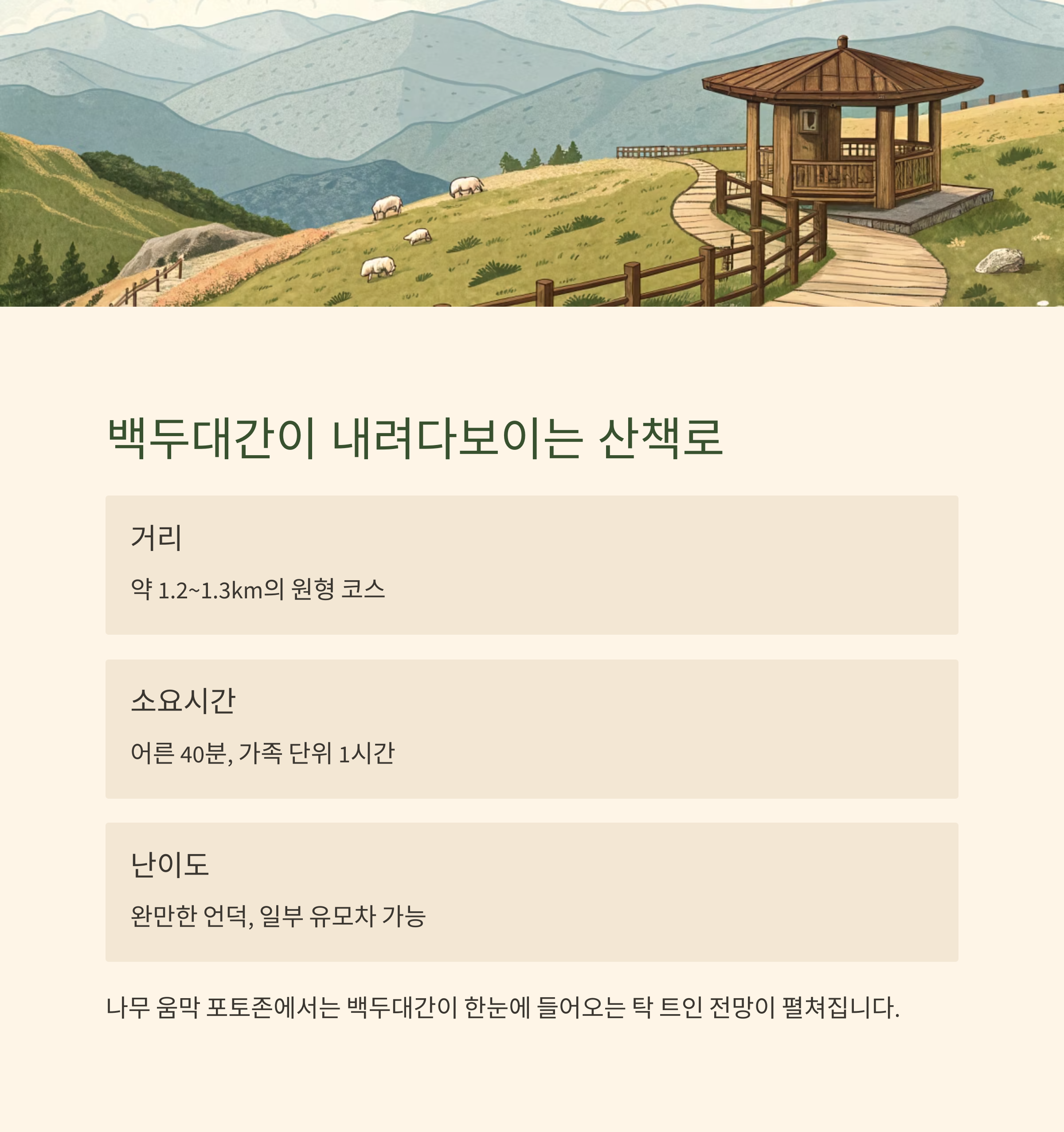 | 주요 포인트 | 초지, 자작나무 숲, 포토존, 정상 전망대 |