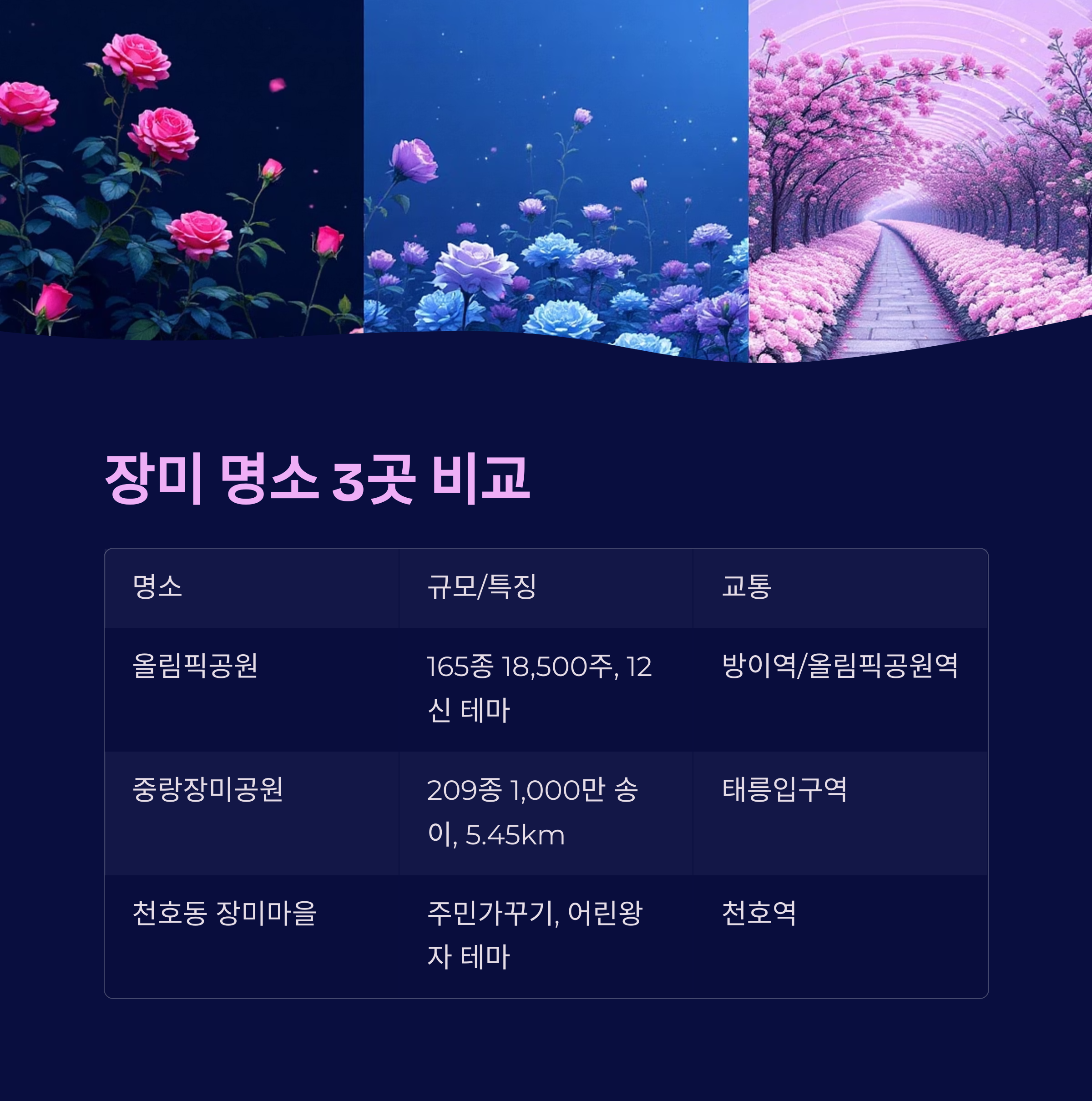 서울 장미 명소 3곳 요약 비교