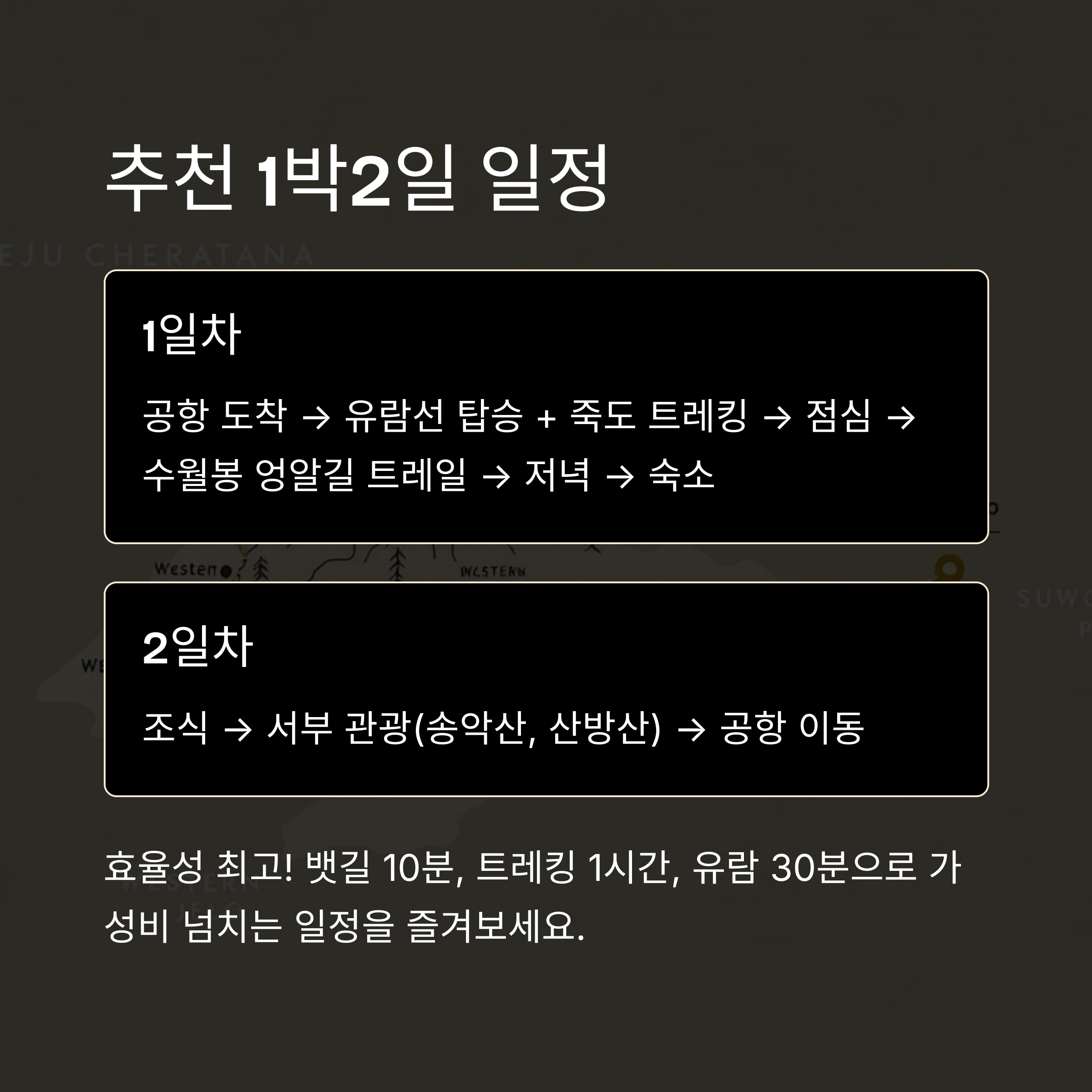 - 오전~정오: 서부 관광 (송악산, 산방산 등)