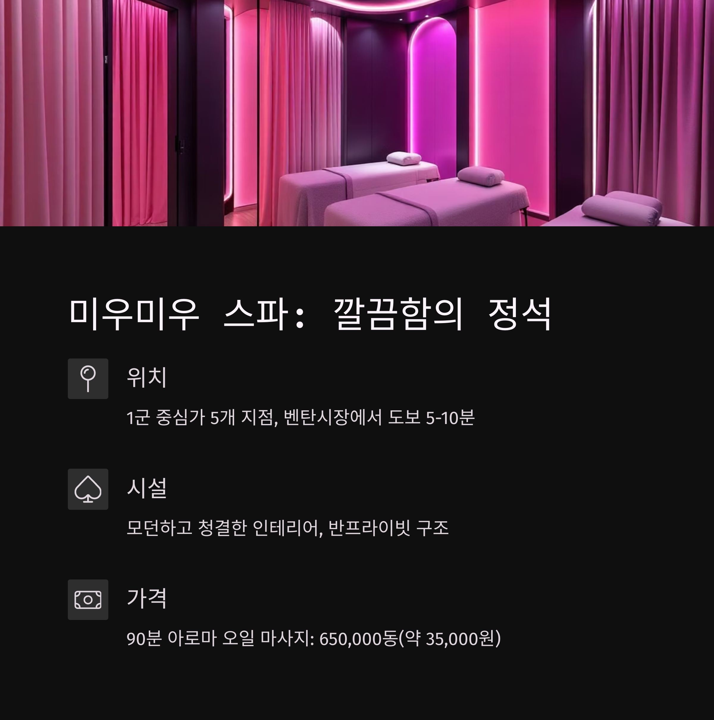 - 아로마 오일 마사지(90분): 650,000동 (약 35,000원)
