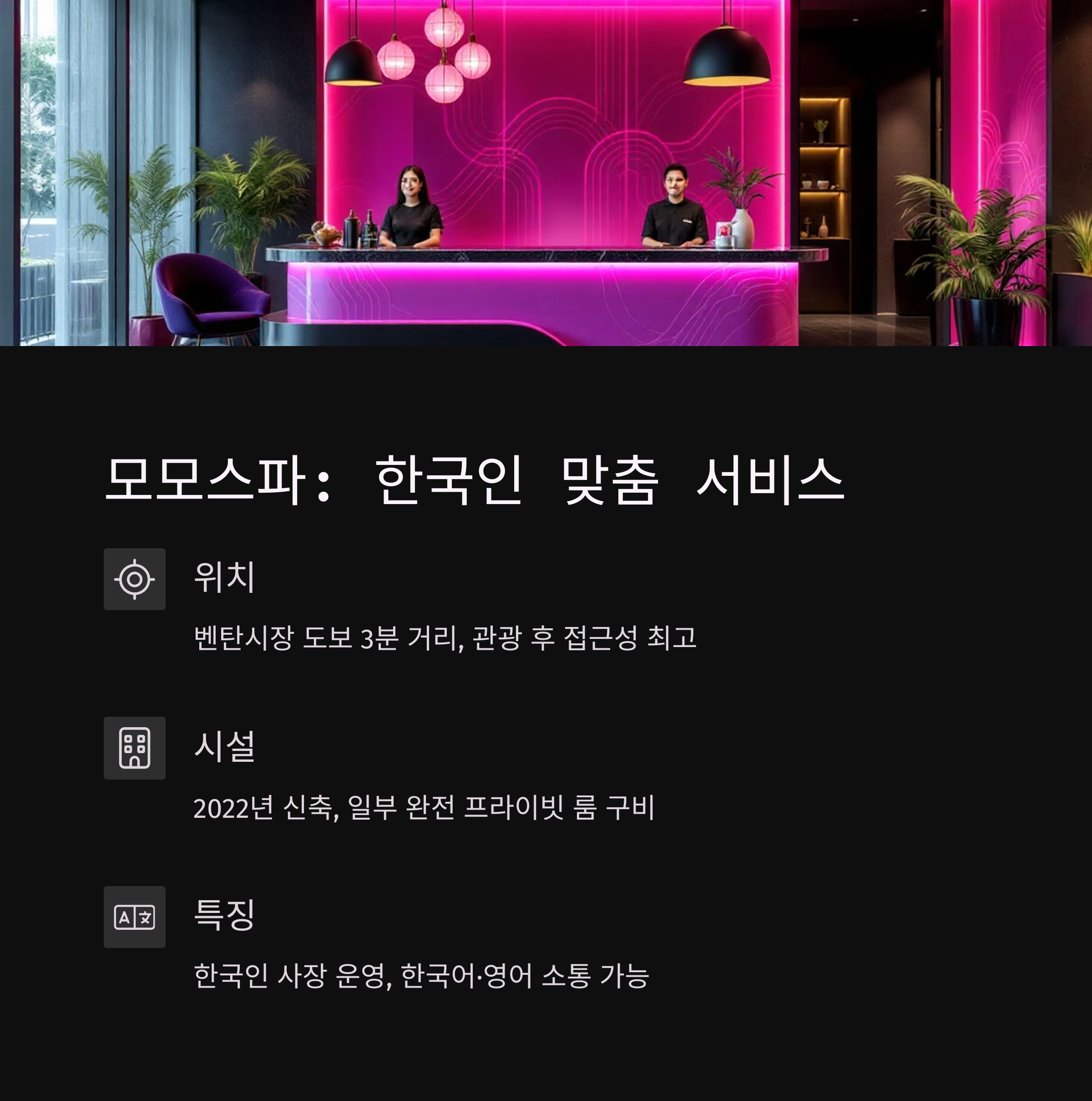 - 쾌적한 시설, 한국어 소통, 관광지 근접성을 원한다면? → 모모스파!!
